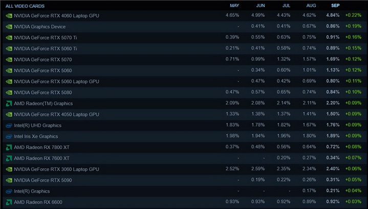 2025年9月份的Steam硬件调查报告已经出炉,凸显了几个非常有意思的趋势。
