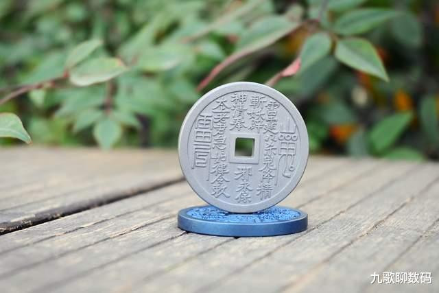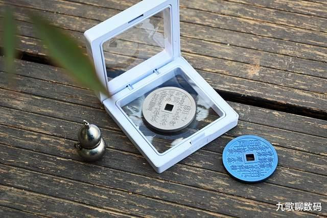 最后再来让我们看下山鬼花钱吧,也就是俗称的“厌胜钱”。其实之前给大家分享过,但那是普通款,今天要体验的则是它家的CNC钛合金精工版,磨砂原色,做工更精致,字体更清晰。它是由高纯度(99.8%)的TC4纯钛所打造,既抗腐蚀又抑霉菌,长久盘玩也不会出现锈迹、霉污等情况。重量上则只有14.5克,完全可以贴身携带,日常把玩。